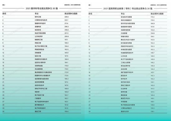 据了解,研究团队根据各专业毕业生平均起薪、未来3年薪资与职级成长、简历受雇主认可程度等维度建模,得出专科、本科、研究生专业就业竞争力30强。