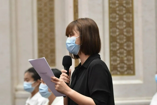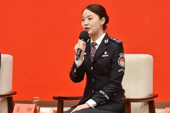 中央广播电视总台央视记者:吴娜女士,您29岁就成为了党的十九大代表。作为一名年轻人,您是怎么看待这份光荣与责任的?作为一名党员,在日常工作当中您又是怎么影响和带动更多的年轻人从百年党史中汲取力量,肩负起新时代的使命的?谢谢。