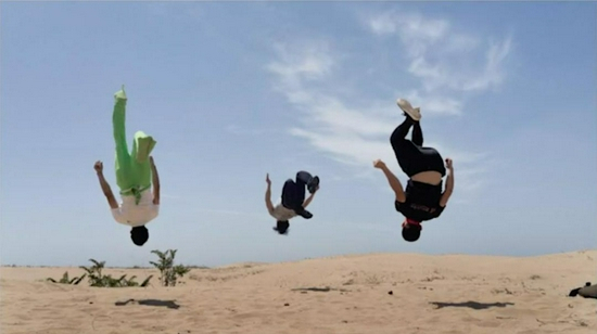 2018年 宁夏银川 替身演员在沙漠中起舞