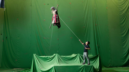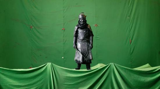 跟《大天蓬》的时候,我拍到了一个特殊的跟组演员,我们叫道具控制器。他穿得严严实实的,全身被绿布裹着,拿着一把剑在空中挥舞。最终做后期的时候,他会被完全地抹掉,观众看到的就是那把剑凌空飞舞的场景。