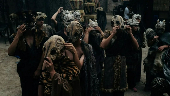 群众演员正在为一场即将开拍的大场面戏进行着练习