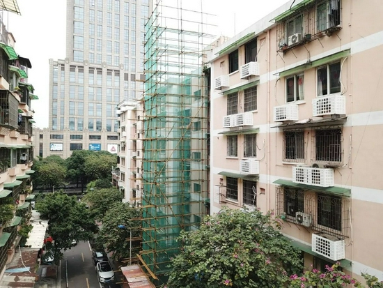 2018年4月23日,广州天河区六运三街4号加装电梯现场。/视觉中国