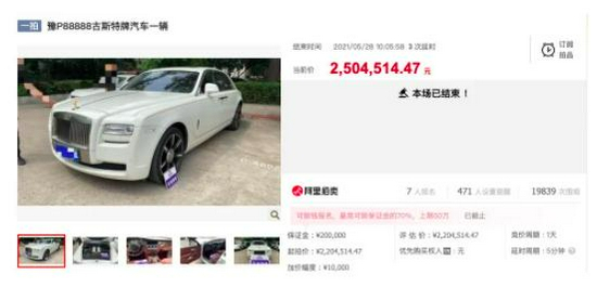 这次莲花系商标拍卖的消息出来之前的一个多月前,据阿里拍卖官网显示,一辆车牌号为豫P88888的劳斯莱斯古思特,在经过22轮竞买后,以245万元价格拍卖成功,后经确认,该豪车所有人为莲花味精创始人李怀清。