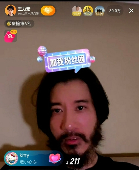 胡子拉碴的王力宏在抖音直播卖货,卖的不是剃须刀,而是自己的录播课。
