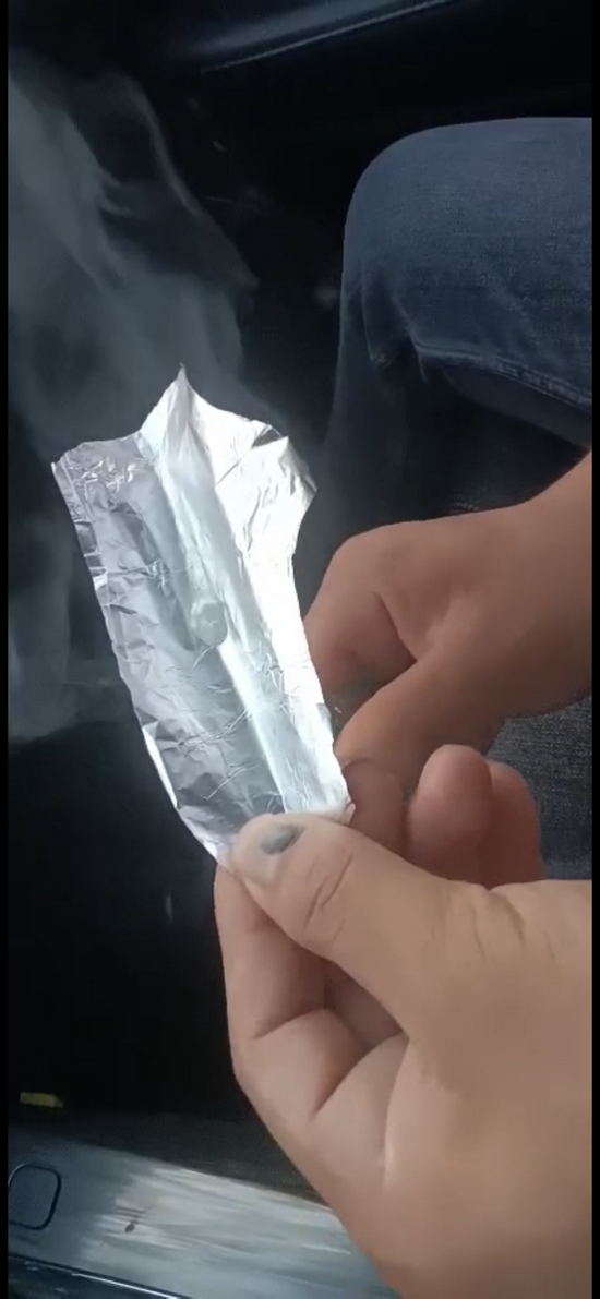 马阳让记者将烟盒上的锡纸撕下一部分,用打火机在烘烤验货。他称,掺入其他东西或纯度不够,火烤时粉末会变成米黄色或黑色,肉眼可辨。