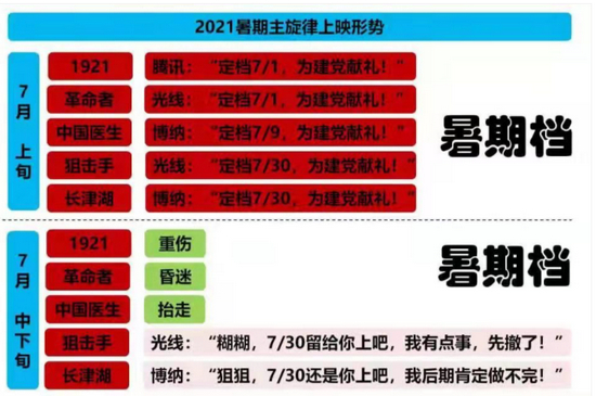目前7月上映的大片《1921》《中国医生》都没能点燃暑期档的观影热潮。不仅如此,最近有暑期上映计划的商业大片还纷纷开始调整档期。