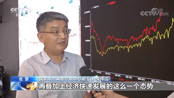 国家电力调度控制中心副主任 朱伟江:主要是受天气因素的影响,再叠加上经济快速发展的这么一个态势,所以造成了7月中旬以来用电负荷有一个明显的上升,也就是第一波高峰的到来。