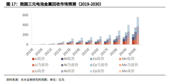 另一方面,回收还能解决贵金属短缺问题。“报废电池就是一座座矿山。”张仪称,三元锂电池的钴是贵金属,来自非洲;锂虽然中国能产,但电池级的多来自澳洲和南美。中国电动汽车百人会理事长陈清泰就建议,中国应把锂、镍、钴等作为战略资源,重视勘察、评价、开采和回收利用等。