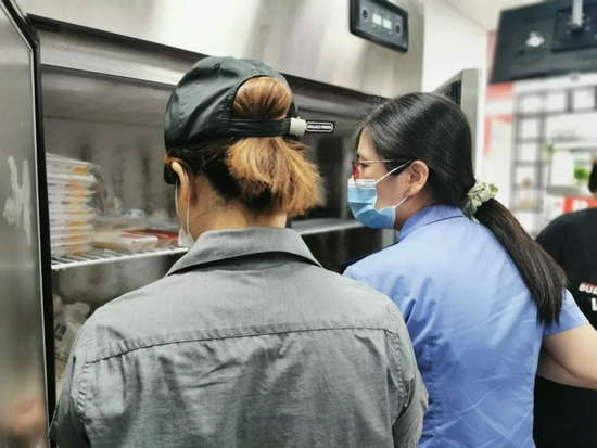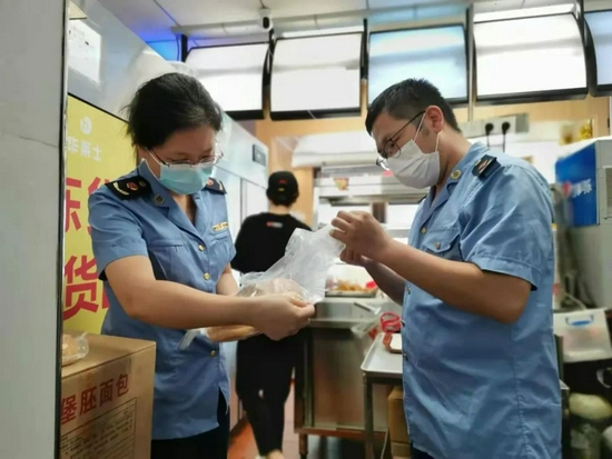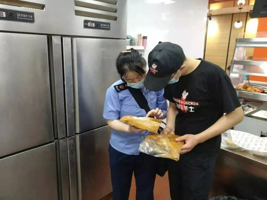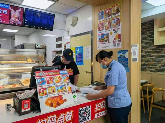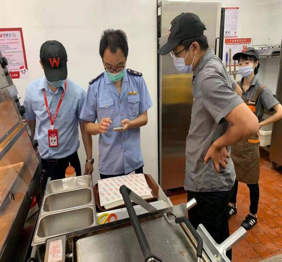 禾山市场监管所执法人员检查华莱士门店食品进货票据