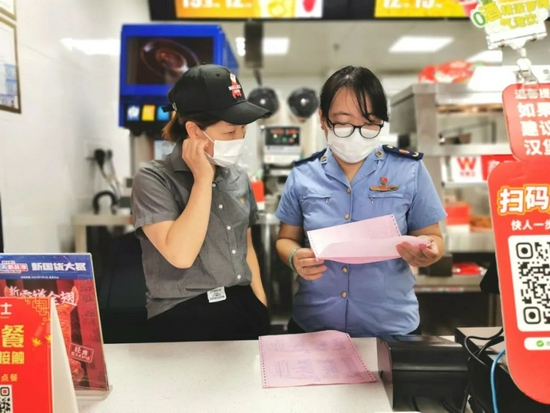 禾山市场监管所执法人员出具了《当场行政处罚决定书》,对经营者给予警告处罚,并将督促其整改到位。