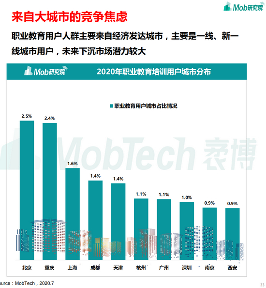 职业教育用户人群城市分布 图源:Mob研究院