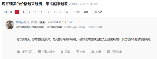 虎扑上有一个热帖,观点是:理发价格越来越贵,手法越来越差。
