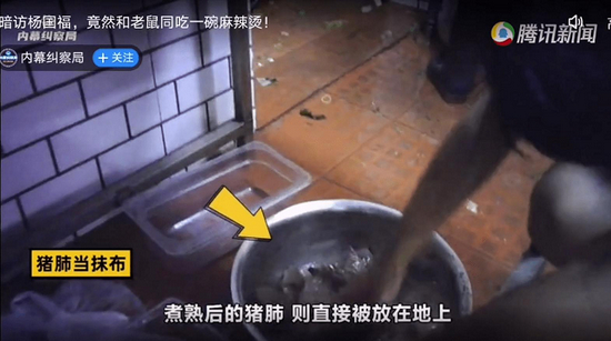 部分员工没有健康证就直接上班;麻辣烫原材料食材被老鼠啃完了继续给客人吃;一些动物内脏不洗就直接下锅;擦鞋的抹布同时在厨房里使用;猪肺直接用来当抹布擦过;锅底回收之后循环利用;隔夜食材和新鲜食材混用等等等等。