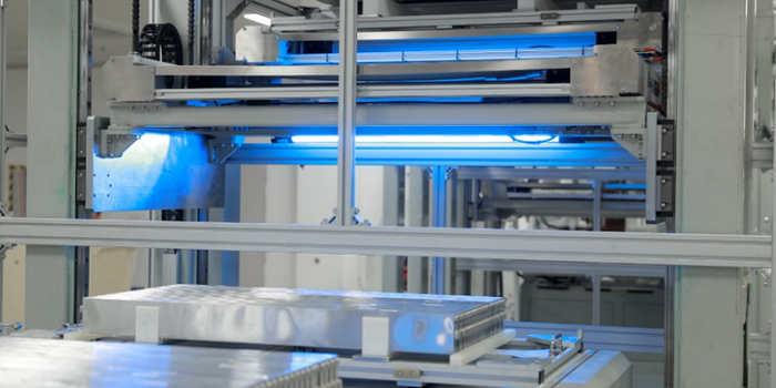 具体到刀片电池的叠片工艺,比亚迪将正极片、负极片,先模切裁断成单片,在隔膜中按照设定的层数叠成极芯,并通过热压将极片与隔膜固定。极片长度约1000mm,条状的正负极片,需要有序地插入折叠隔膜里,这对工艺要求是十分苛刻的——极片需要平整地插入,同时要保证插入的深度,需要刚刚好。