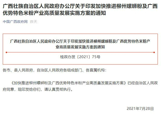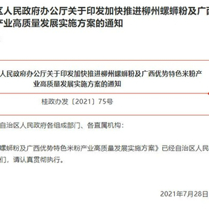 日前,自治区发布《加快推进柳州螺蛳粉及广西优势特色米粉产业高质量发展实施方案》(以下简称《方案》),要用工业化的理念谋划发展广西优势特色米粉全产业链,到2025年,力争实现广西优势特色米粉全产业链销售收入超1000亿元。