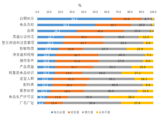 科信食品与健康信息交流中心,在2020年发布了《中国消费者食品标签认知及使用状况调研报告2020》,其中指出仅有8.7%的消费者从来不看配料表,而每次必看的消费者占样本的13.1%。