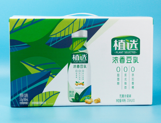 伊利“植选”豆乳,主打零蔗糖高蛋白,简约配方。