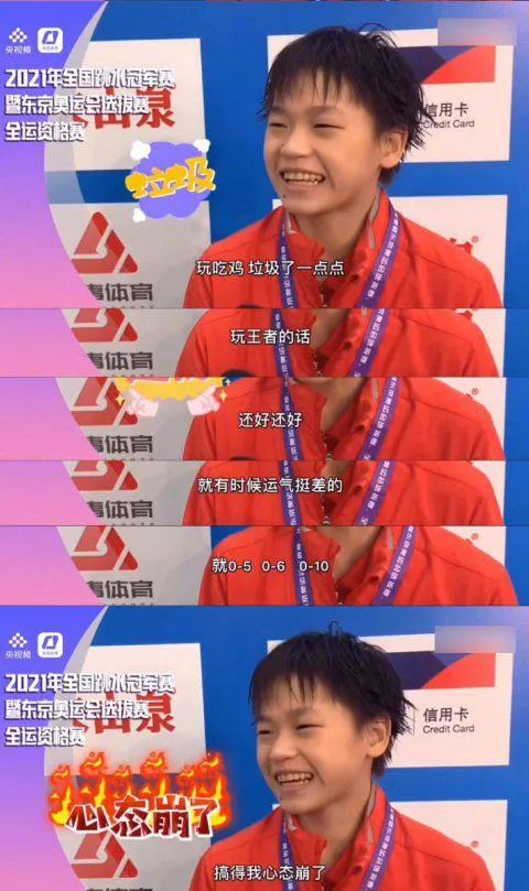 这次拿到奥运会金牌后,全红婵接受采访,画风依旧充满天真。