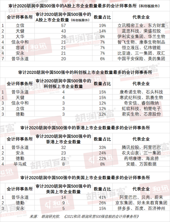 胡润研究院携手和讯联合发布《2021和讯·胡润民营500强信赖的会计师事务所》