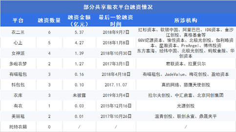 此外,心上、女神派、多啦衣梦、有喵租衣、美丽租等共享服装平台均获得不同额度和轮次的融资。但就目前统计来看,行业最近的一笔融资停留2019年3月4日,是衣库平台的一次未披露金额融资,此后再无融资消息传来。