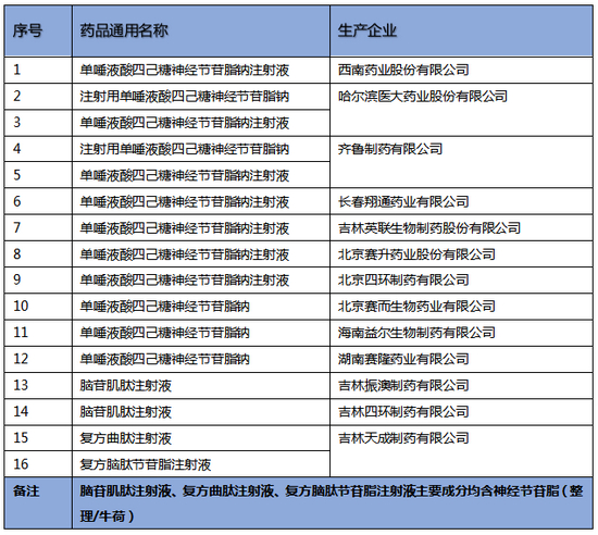 目前,国内生产神经节苷脂类药物的药企及对应的药品名称。整理信息来源:国家药监局