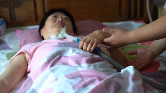 如今,两年过去了,刘芸因气管切开,无法长时间脱离呼吸机,完全护理依赖,吃饭靠喂,翻身需要别人帮忙,大小便也无法自理,每天要经气道瘘口吸痰20次左右。“人的尊严和自由都没了。这不是生活,只能算是活着。”王占群黯然说道。