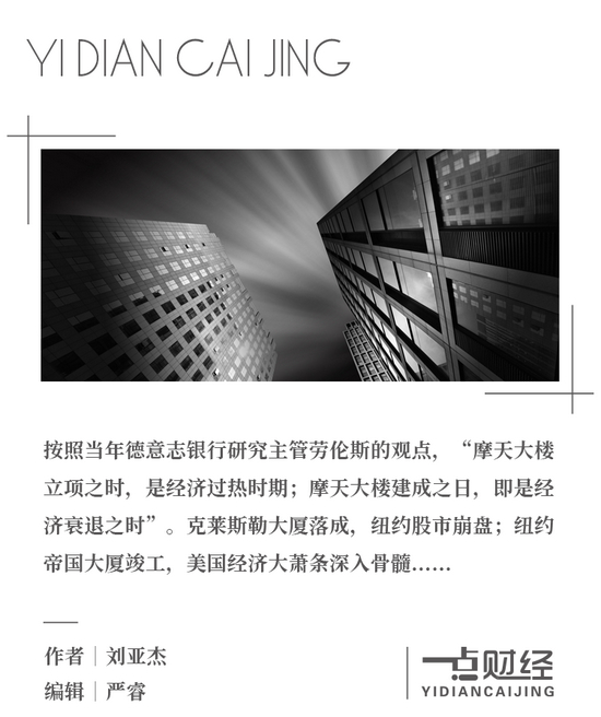 按照当年德意志银行研究主管劳伦斯的观点,“摩天大楼立项之时,是经济过热时期;摩天大楼建成之日,即是经济衰退之时”。克莱斯勒大厦落成,纽约股市崩盘;纽约帝国大厦竣工,美国经济大萧条深入骨髓;吉隆坡双塔鼎立,轮到马来西亚陷入泥潭……