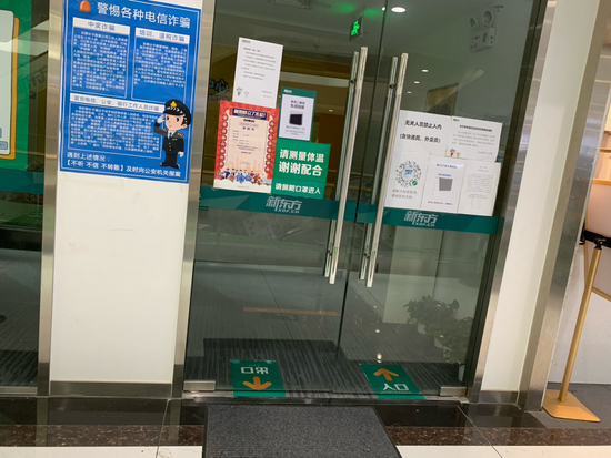《财经天下》周刊发现,在2层和4层的“新东方优能一对一”门店都紧锁着大门,门上贴着不少有关疫情防控的通知,还有一份学员二维码生成链接,上边写着:“请打开微信扫一扫,输入报班预留手机号码和学员姓名”。