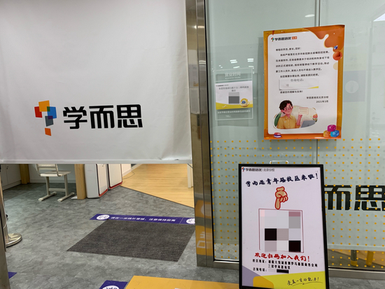 自2018年教育监管政策趋严以来,部分教培机构就开始“逃离”海淀黄庄。如今随着疫情管控加紧、“双减”政策落地,这里各写字楼内部的学科类培训机构已经所剩无几,一些教培品牌办公地点张贴着醒目的“暂停业务”或“搬迁招租”的通知。