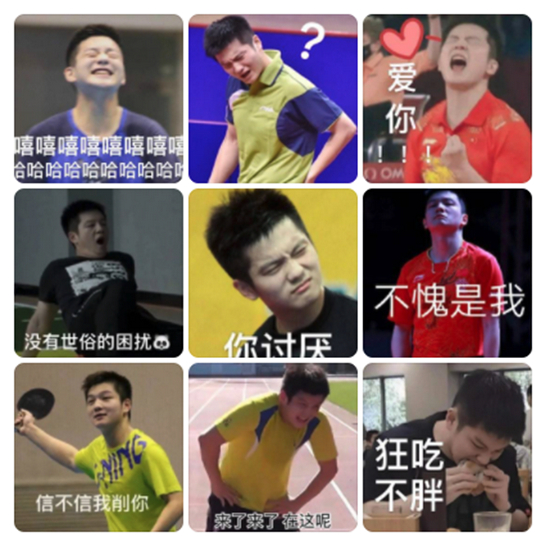 除了吴京表情包外,在奥运期间多次登上热搜的国乒队,也成为了网友自制表情包的重要来源。尤其是马龙、许昕和樊振东组成的“龙蟒胖”组合,网友们巧妙地根据球员的不同表情和动作配上文字,足见网友对“国乒喜剧人”的喜爱。