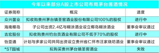 夜郎古酒业的情形是整个仁怀酱香白酒行业高景气的一个缩影。仁怀酱酒销售火爆,敏锐的资本也不断涌入这座“中国酒都”,将目光瞄向当地的酒企。海南椰岛、众兴菌业、吉宏股份等上市公司先后宣布布局茅台镇的企业。当地政府也顺势而为,发力资源整合。数据显示,近年来,仁怀市已先后引进全国知名企业参与资源整合,招商引资签约企业30多家、引进资金300多亿元。