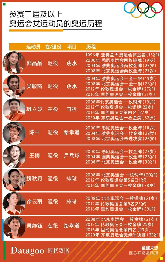 而纵观历届奥运,存在不少中国女运动员不仅保持着良好的竞技状态参与了多届奥运赛事,甚至还实现了多次夺冠的成就。