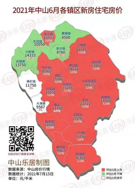 中山各镇区中,火炬开发区新增住宅4050套排名第一,同比上涨270%;此外,西区新增2616套,同比上涨769%;南朗镇新增2428套,同比上涨1739%。