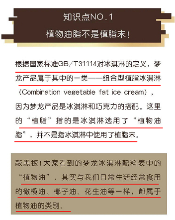 8月1日,梦龙官方微博回应道:梦龙符合国家规定。根据国家标准对冰淇淋的定义,梦龙产品属于“组合型植脂冰淇淋”。配料表中的“植脂”,指的是植物油脂,并非植脂末。