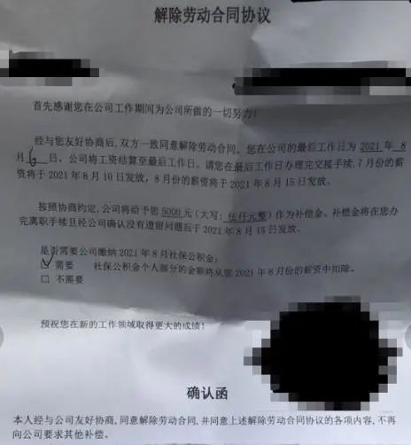 8月2日,阿橙所在的公司解散了销售团队,并计划在12月31日前给每个员工发放1000元作为补偿,绝大部分员工觉得金额太少,重新面聊后公司才决定给补偿一个月底薪,并让大家签署了“解除劳动合同协议”。但小刘离职后却因没有拿到“白纸黑字”的证据而难以维权。