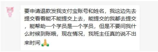 “大部分线上和线下课都开始处理退款,但也有个别机构退款难”,小雅表示,如果这次“班主任”提交的退费申请还是不能通过“就只能找消协试一下了”。