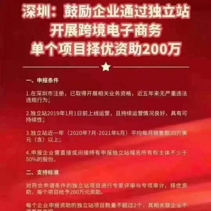 值得一提的是,深圳市在8月9日出台了一份《鼓励企业通过独立站开展跨境电子商务单个项目择优资助200万》的通知,鼓励跨境电商企业开展独立站业务。独立站是区别于在亚马逊电商平台、卖家自行建设、具有独立域名的购物网站,在欧美等海外地区是颇为流行的网购渠道。