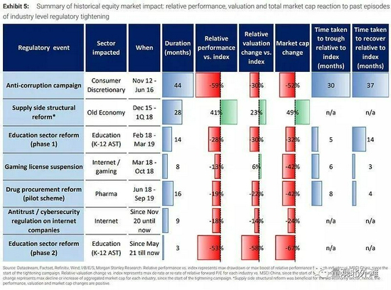 这次监管的很多内容实际都是老内容,为什么在过去9个月中突然加速?我们曾见过这一幕不知道多少次。中国的监管环境总是在过度松弛和过度收紧当中摇摆,尤其是在新兴行业。之前06-08年的采掘行业,08-10年的乳制品行业,13-14年的高端白酒餐饮行业,16-17年的对外投资,18年的游戏,18-19年的药品,大多都存在了1-2年。如何在调仓上应对:仍需要暂时回避政策利空的行业板块(民生、安全相关的标的)。更多关注:清洁能源、数据和网络安全、高端制造、半导体供应链可控、创新生物药等新经济板块。
