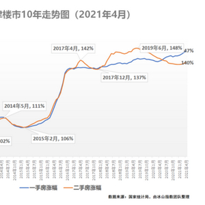 而且,这两个城市在这十年的任何阶段,你会发现都是新房涨幅高于二手,俗称新房拉着二手走,不过是在2018年后也在持续,只不过新房对二手有点拉不动了。