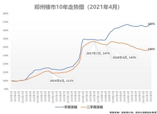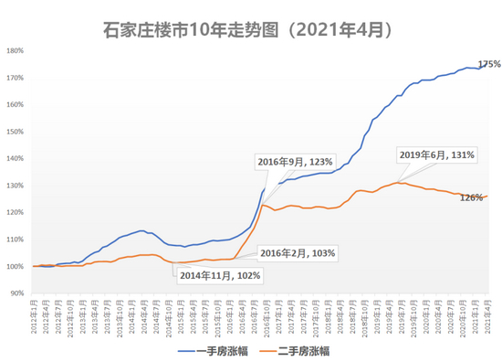 实际上从2021年春天开始,这两个城市楼市开始逐步回暖,也出现了新房和二手房涨幅双抬头,只不过这个抬头石家庄不是特别的明显,而郑州比较明显。