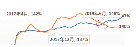 尤其是2020年年初,这种情绪达到了高潮,二手房价涨幅跌破了新房二手交叉线(红圈处),看空的情绪达到极点。