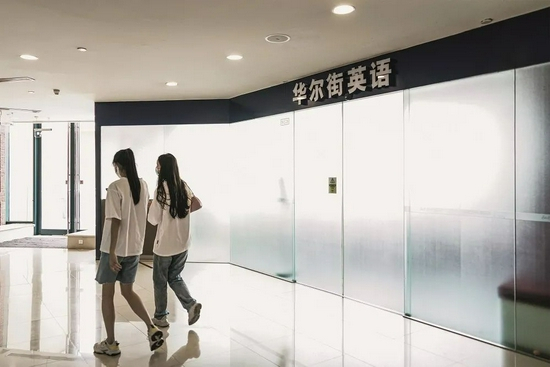 2021年8月13日,北京朝阳区,华尔街英语(SOLANA蓝色港湾店)大门紧闭,门口灯牌已卸下。图/视觉中国
