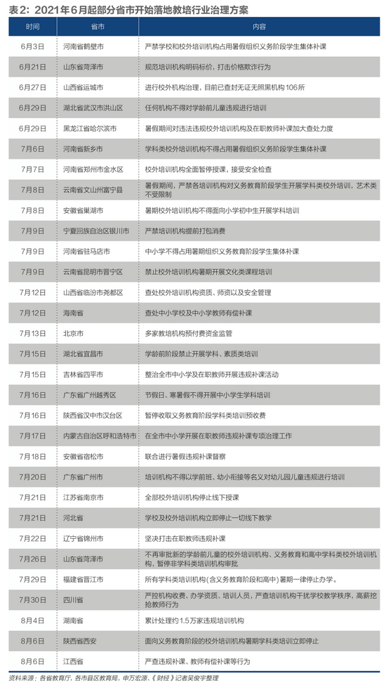 整治校外培训机构从2018年就开始了。国务院办公厅颁布了《关于规范校外培训机构发展的意见》,2019年教育部等六部门又出台了《关于规范校外线上培训的实施意见》,两份文件对培训机构的办学、师资、收费、培训内容、培训时间都作出了明确规定。