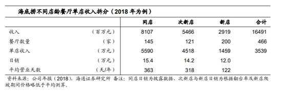 据海通证券统计,2018年海底捞的新店平均单日收入12万元,次新店14.2万元,而老店则能达到15.4万元。