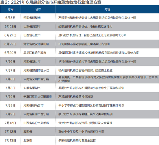 整治校外培训机构从2018年就开始了。国务院办公厅颁布了《关于规范校外培训机构发展的意见》,2019年教育部等六部门又出台了《关于规范校外线上培训的实施意见》,两份文件对培训机构的办学、师资、收费、培训内容、培训时间都作出了明确规定。