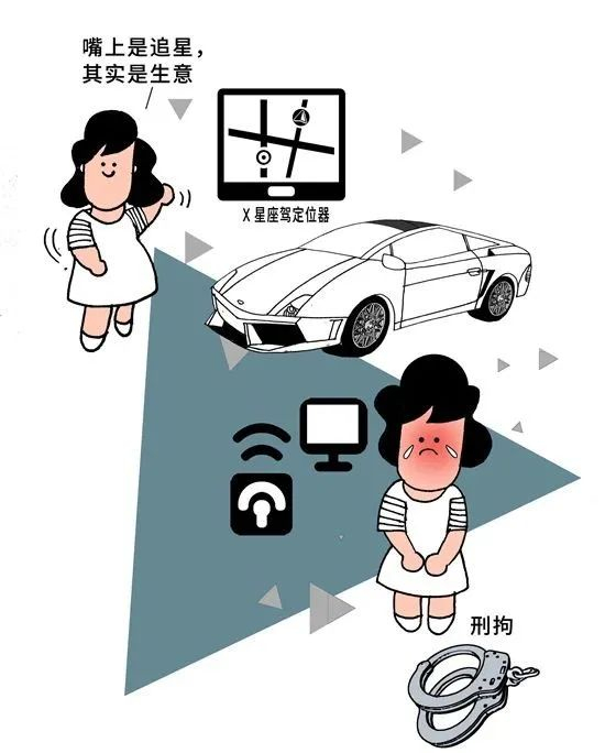 7月,北京市公安局昌平分局通报称,演员王某某在京长期租用的车辆上被人安装了定位装置。嫌疑人李某(女,25岁)、张某某(女,24岁)系该演员粉丝,为了达到“追星”目的,在该车上非法安装了定位装置,掌握相关行程信息后利用网络社交平台炫耀,并曾售卖牟利。两人被依法刑事拘留。
