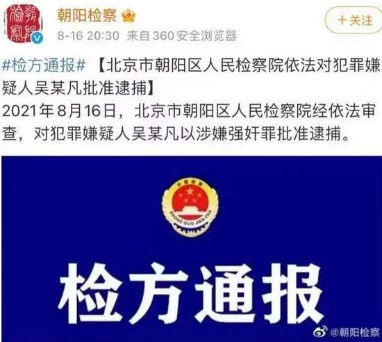 8月16日,朝阳区检察院发布公告