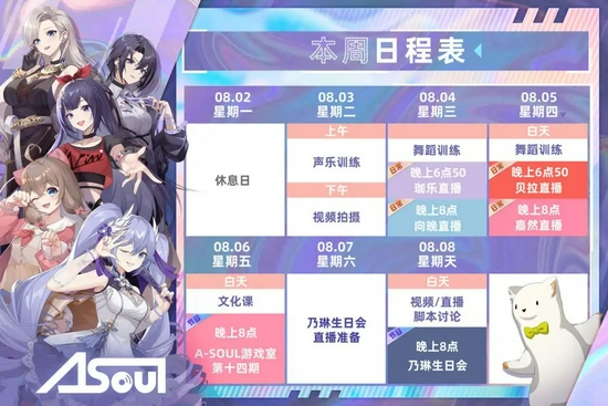 情感诉求也是偶像存在的意义。粒粒是一位喜欢日本的虚拟偶像的粉丝,她说,虚拟偶像和观众,相比真人明星与粉丝,关系会更加亲密,更有“相互依赖扶持”。可以发现,乐华娱乐在运营A-SOUL时,会提前公布每周偶像们营业内容,与粉丝保持高频互动。