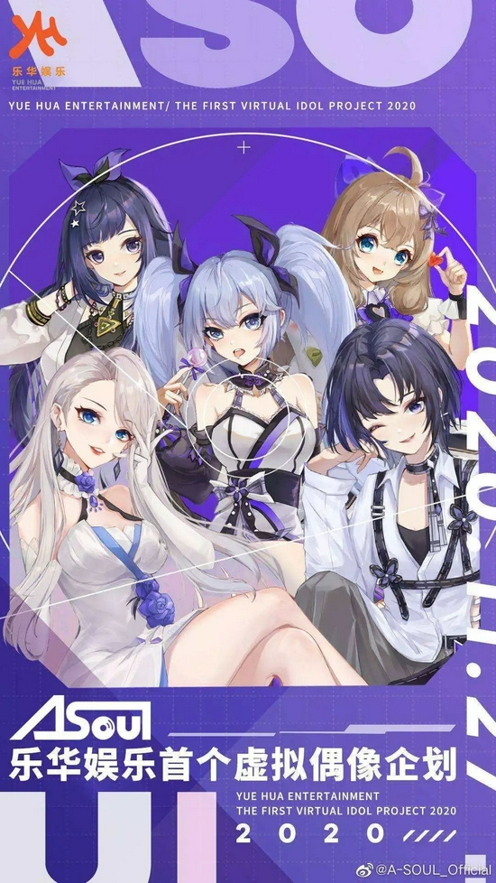 字节跳动联合乐华娱乐推出的虚拟女子偶像组合A-SOUL,出道10个月以来,五位成员账号的微博粉丝数均超百万。队长贝拉更是成为B站虚拟主播区,第一个达成万人舰长(舰长指B站上为了获得主播间特定权益而付费的用户)成就的主播。
