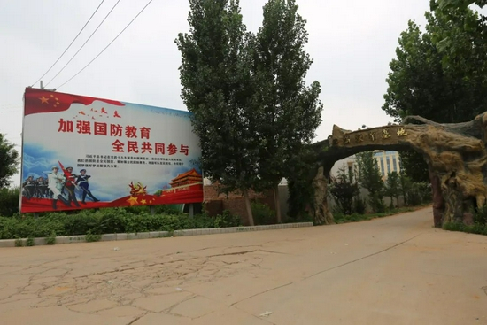 8月17日,《中国慈善家》前往距离石家庄市区约26公里的涉事夏令营基地。只见路边设有醒目的广告牌,写着“加强国防教育,全民共同参与”。一座拱形门上标有“军尚教育基地”,进拱门后顺一条小道往里走500米山路,才能见到夏令营基地。小道两侧都是田地和果园,一路随处可见“军尚”元素,地势比较隐蔽。